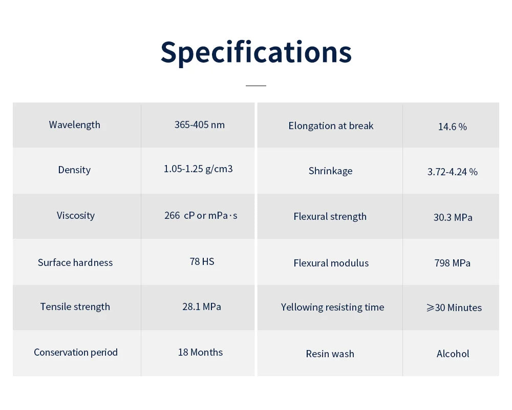 A 100% rise in resilience compared to standard resin,making the prints and models less easy to break.