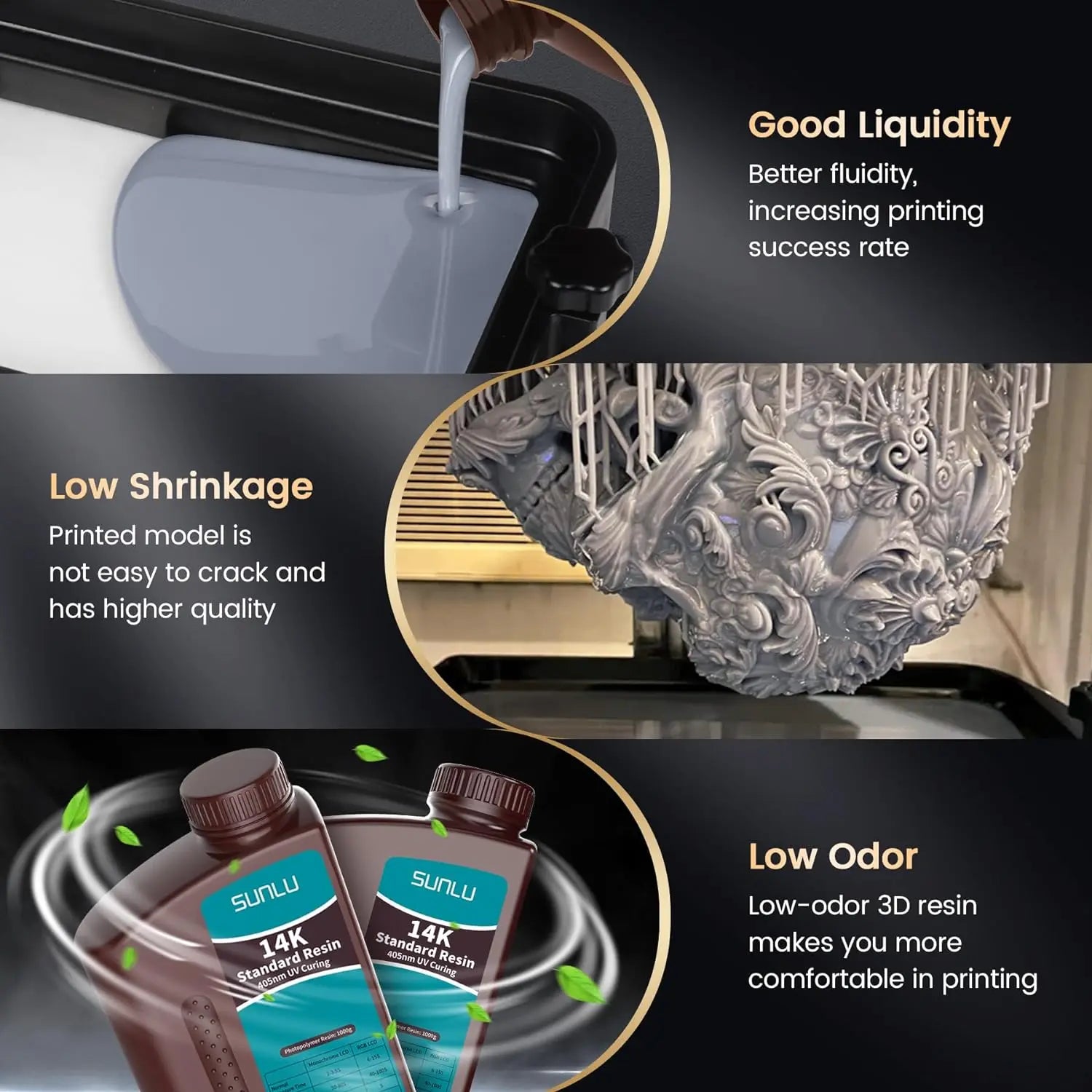 SUNLU 14K Standard Resin 405nm UV Resin 2KG 1KG/Bottle For LCD 3D Printer Material Print Easy to Print Good Precision Fast Ship